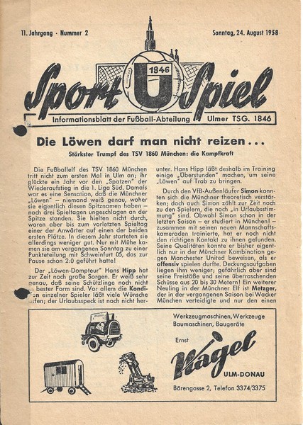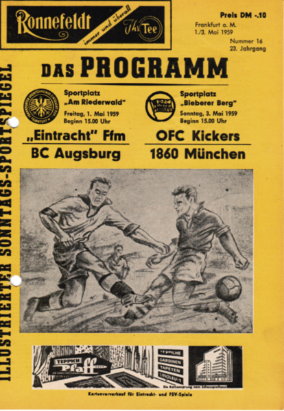 Beim Programm Kickers Offenbach - Tasmania 1900 befindet sich im Innenteil eine Aufstellung zum Freundschaftsspiel TeBe/BSV 92 gegen den TSV München 1860. Das Spiel endete im Herthastadion am Gesundbrunnen mit 4:1 für 60 München