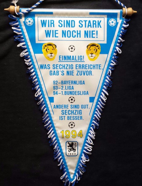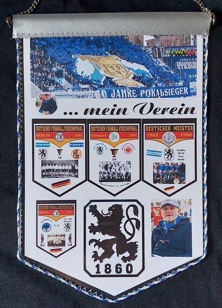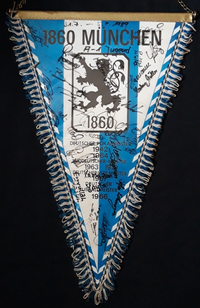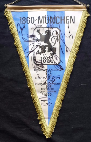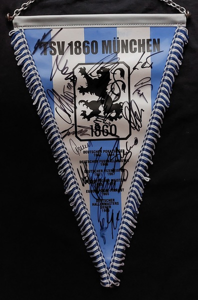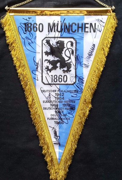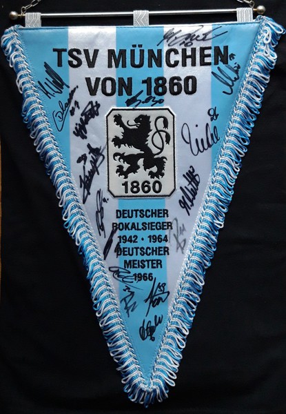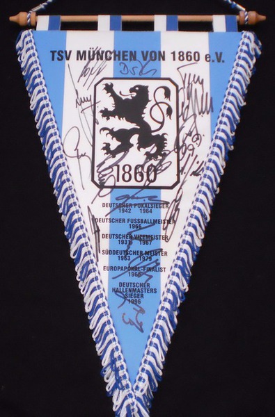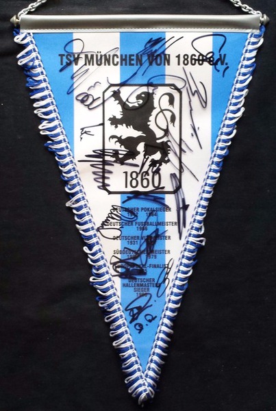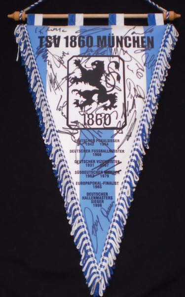 Übergabewimpel vom TSV München von 1860 bei Freundschaftsspielen